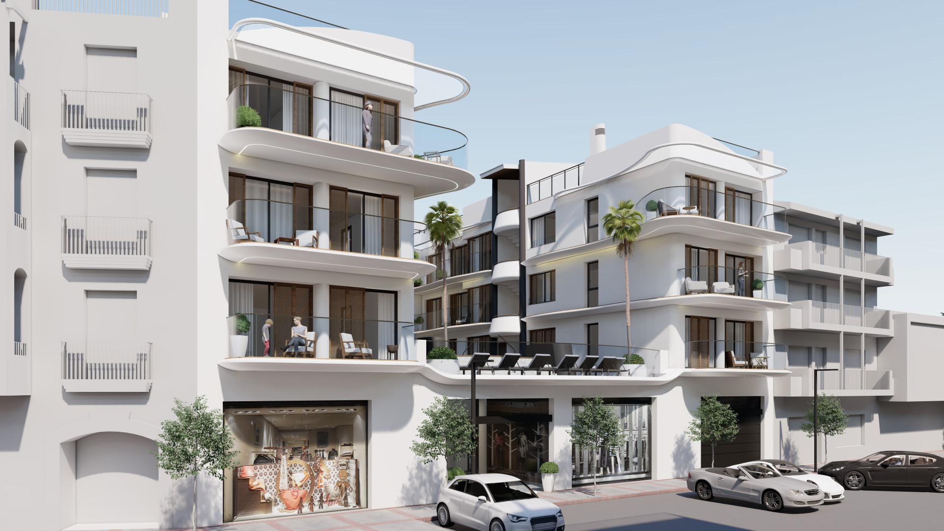 It consists of 40 homes with 1, 2 and 3 bedrooms and 2 and 3 bedrooms with solarium, as well as underground parking with 80 spaces for cars and 10 for motorcycles and common areas with swimming pools. With access from two streets, Caridad Street and Andalusia Avenue -one of Estepona’s main arteries- the icing on the cake for this unique building will be provided by the 24 commercial premises that will be located on its ground floor.